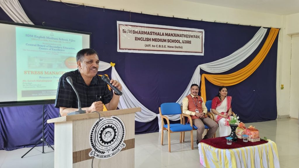 Ujire, November 15, 2025: Schoolin collaboration with CBSE’s Centre of Excellence, organized a special training session on stress management for its staff and educators at the SDM Women’s ITI College Seminar Hall today.The respected Principal of School, Mr.ManamohanNaik K.G, extended a warm welcome to the distinguished guests and participants, and officially inaugurated the workshop alongside the resource persons.
