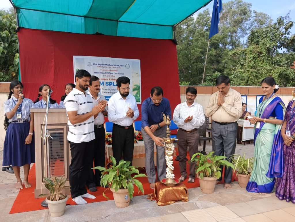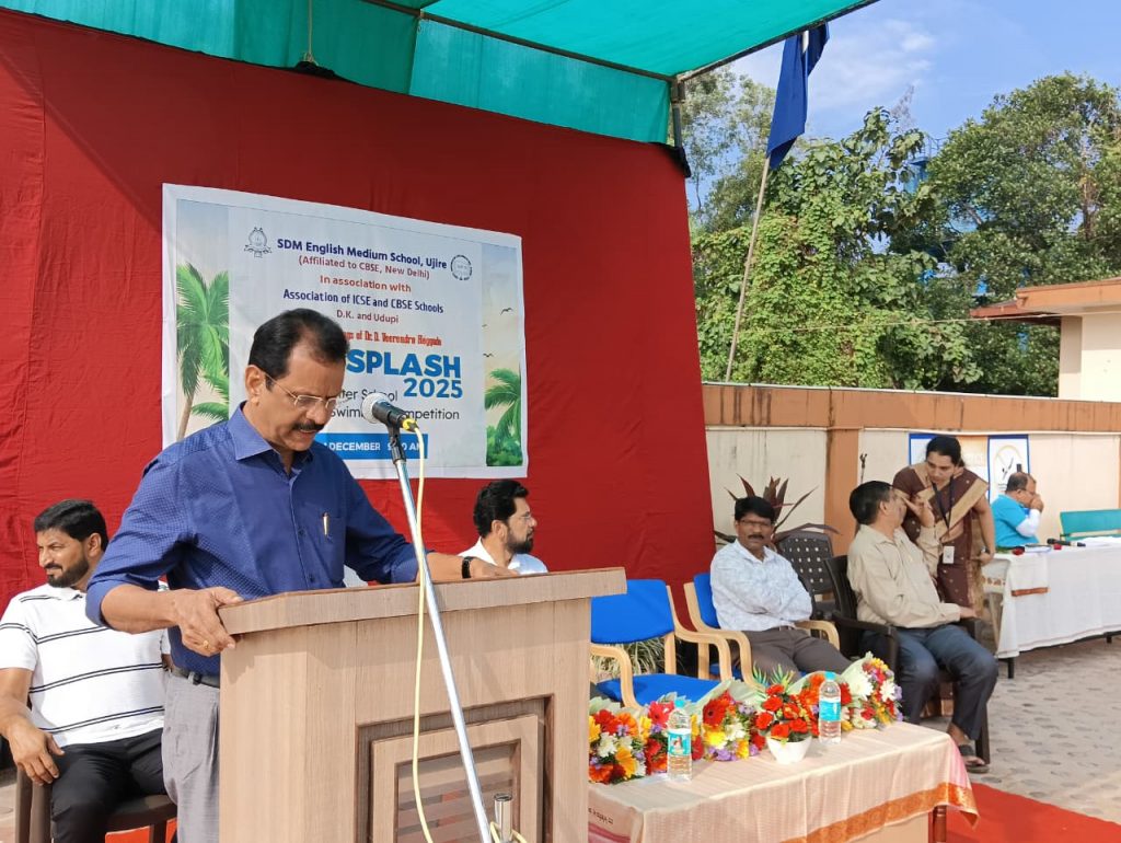 Ujire, 6 December 2025: The much-anticipated ‘SPLASH – 2025’ Dakshina Kannada and Udupi districts inter-district swimming competition was inaugurated at the swimming pool of SDM Institute, Ujire. The event is organized in collaboration with Sri Dharmasthala Manjunatheshwara English Medium School (CBSE) and the Association of AICS, ICSE, and CBSE Schools. Dr. Satishchandra S., Secretary of SDM Educational Institutions, officially commenced the competition by lighting the lamp. In his address, Dr. Satishchandra S emphasized the importance of developing swimming skills from a young age. “Swimming is a unique skill that builds self-confidence and morale through competition. Such events lay the foundation for future high-level achievements,” he said, wishing all competitors the best of luck.