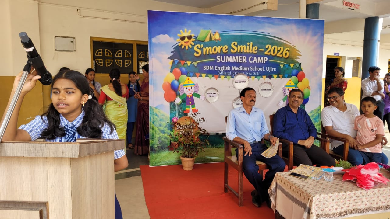 Ujire, April 2: The School bid a vibrant farewell to its summer camp on April 2, marking the end of an enriching program with a colorful closing ceremony.Chief guest Dhanyakumar, Student Welfare Officer at SDM Educational Institutions, inaugurated the event by appreciating the students’ handmade handicrafts on display. He commended their creativity and effort, highlighting how such activities foster holistic development.
